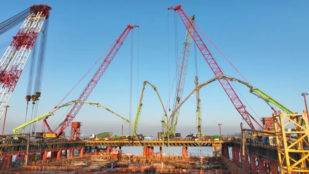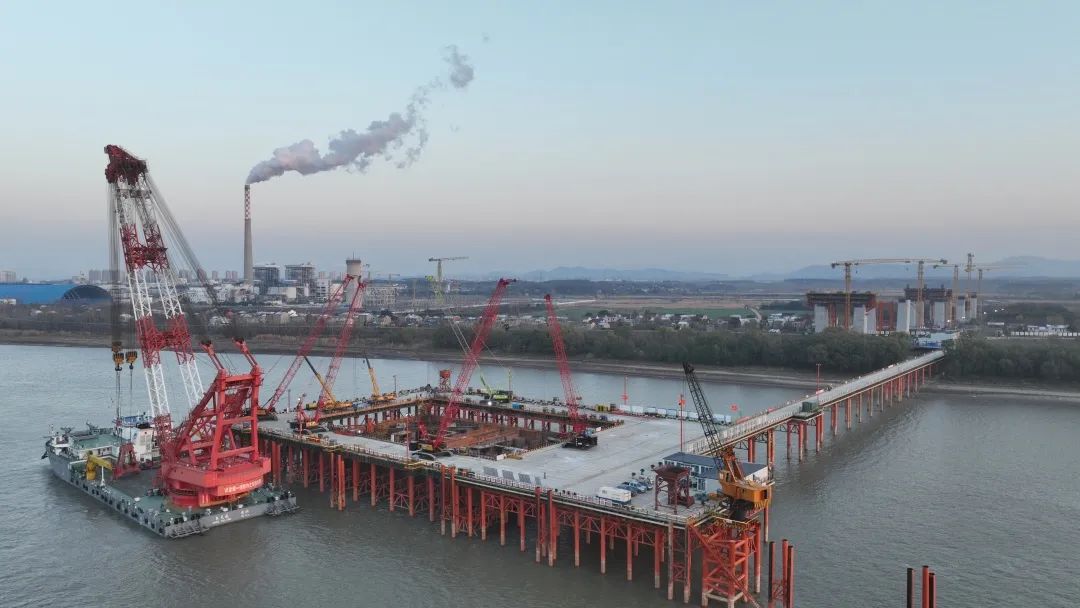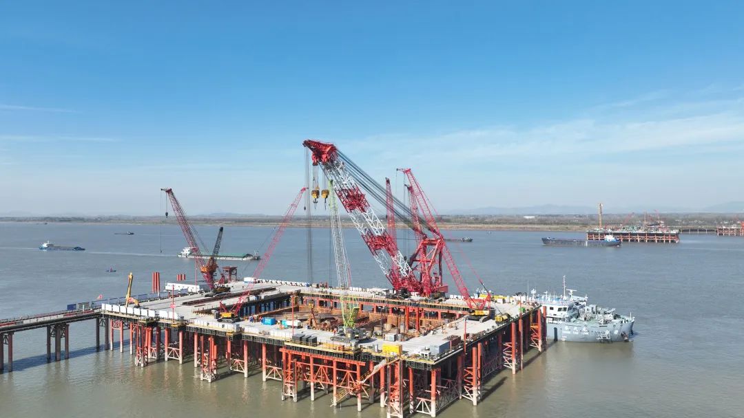 12月26日下午,在長江池州段離南岸大堤約380米處的江中施工點,隨著池州長江公鐵大橋4號墩圍堰內(nèi)最后一方封底混凝土的灌入,由集團承建的池州長江公鐵大橋4號主墩圍堰封底順利完成,標(biāo)志著池州長江公鐵大橋即將進入主墩承臺施工階段,為池州長江公鐵大橋主塔施工打下堅實基礎(chǔ)。
