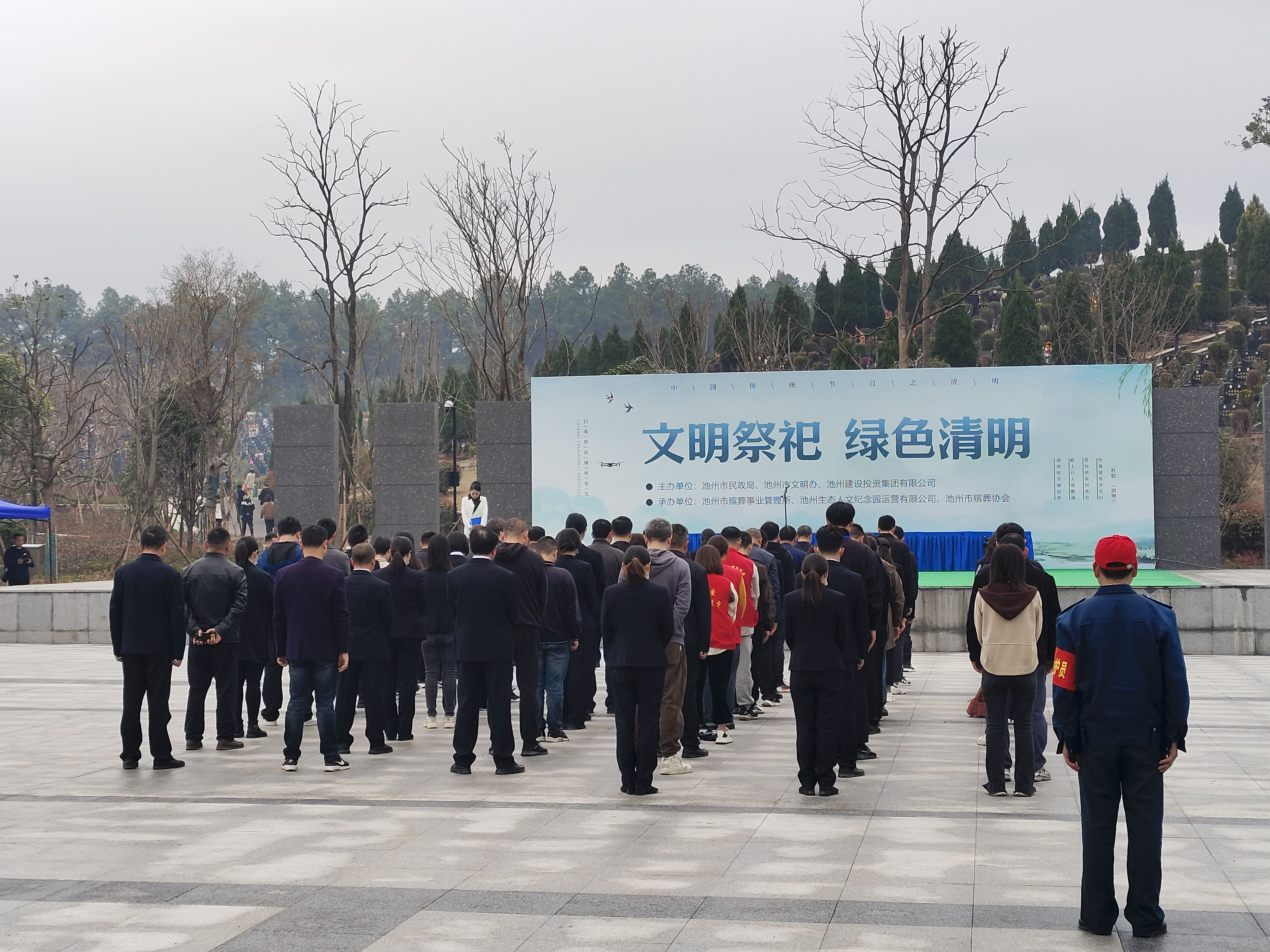 3月23日,池州市2024年“文明祭祀 綠色清明”活動(dòng)啟動(dòng)儀式暨第四屆清明集體公祭活動(dòng)在池州生態(tài)人文紀(jì)念園莊嚴(yán)舉行,為安放在生態(tài)人文紀(jì)念園所有逝者集體祭祀,以表達(dá)對(duì)逝者的敬意,也代為傳遞家人對(duì)逝者的思念。本次活動(dòng)由市民政局、市文明辦、市建投集團(tuán)聯(lián)合主辦,共有家屬代表、行業(yè)代表、青年志愿者、工作人員等100余人參加本次活動(dòng)。