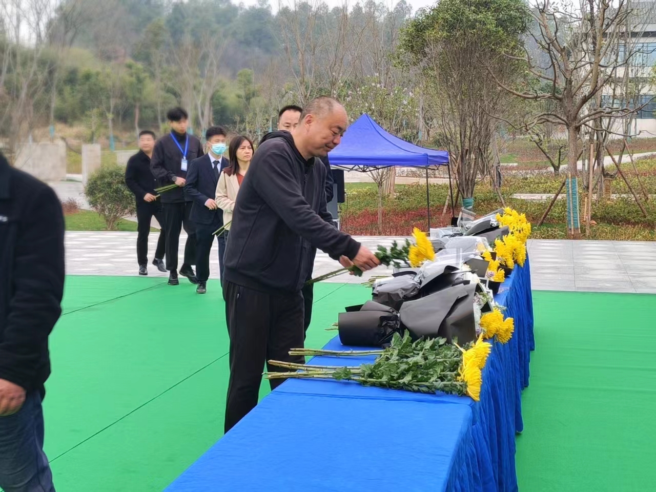 上午9時(shí),集體公祭活動(dòng)正式開(kāi)始?,F(xiàn)場(chǎng)樂(lè)聲低徊,莊重簡(jiǎn)樸,參加儀式人員身著深色服飾,在展臺(tái)處莊嚴(yán)肅立。在集體公祭環(huán)節(jié),全體人員集體默哀,隨后手持鮮花拾階而上敬獻(xiàn)祈愿,面向公墓行鞠躬禮,表達(dá)對(duì)逝去人的追憶和緬懷。