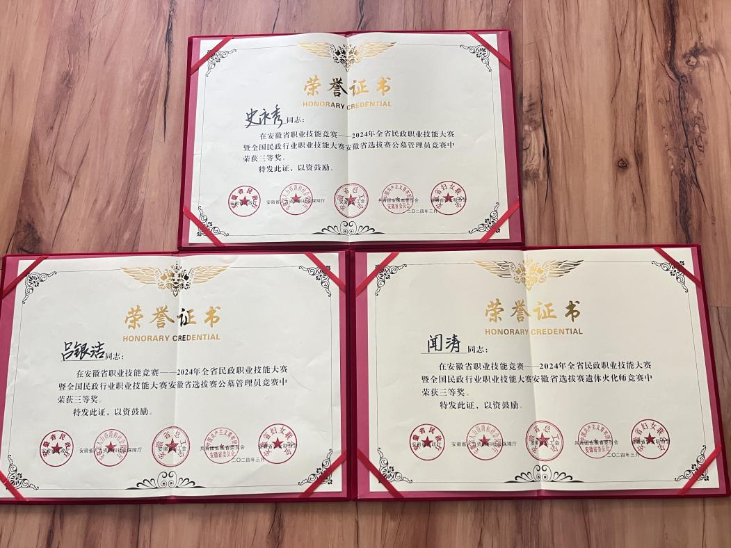 近日,在六安市舉辦的2024年安徽省民政行業(yè)職業(yè)技能競賽圓滿落幕。本次競賽共分公墓管理員和遺體火化師2個賽項,池州生態(tài)人紀(jì)念園運(yùn)營有限公司參賽隊參賽選手史永秀、呂銀潔榮獲公墓管理員賽項個人“三等獎”,聞濤獲遺體火化師賽項個人“三等獎”,其中,遺體火化師賽項是我市首次獲獎。