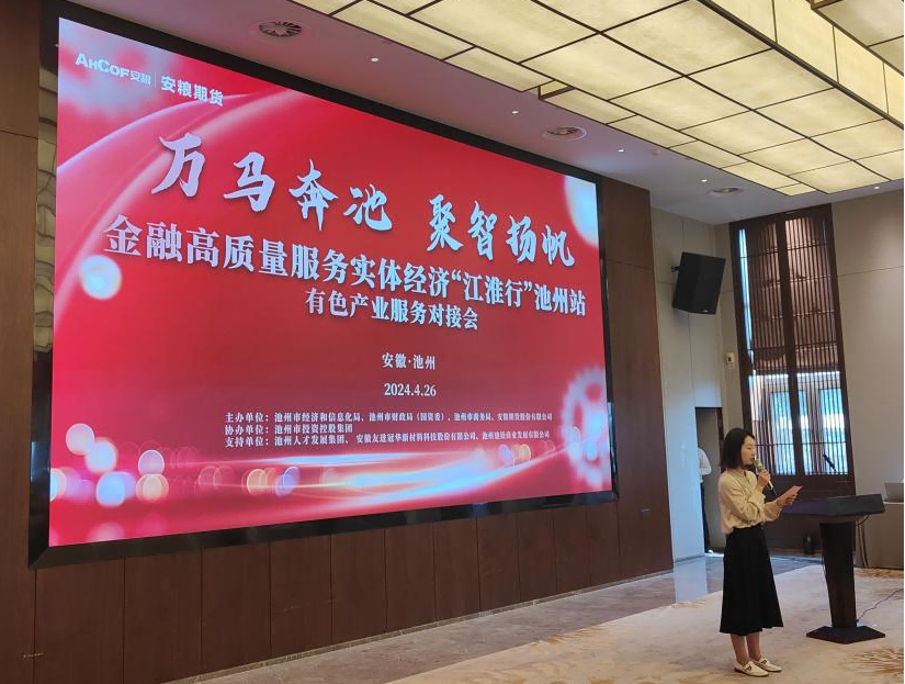 本次會(huì)議由池州市經(jīng)濟(jì)信息化局、池州市財(cái)政局(國(guó)資委)、池州市商務(wù)局、安糧期貨股份有限公司主辦,池州市投資控股集團(tuán)協(xié)辦,安徽友進(jìn)冠華新材料科技股份有限公司、池州建投商業(yè)發(fā)展有限公司提供支持,邀請(qǐng)了池州市鎂鋁銅相關(guān)企業(yè)及多家金融機(jī)構(gòu)代表參會(huì)。池州市商務(wù)局黨組書記、局長(zhǎng)李進(jìn)出席活動(dòng),池州市經(jīng)濟(jì)與信息化局副局長(zhǎng)朱宇、安糧期貨董事長(zhǎng)韓文輝先后致辭。