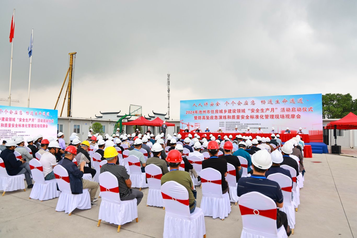 2024年6月是第23個全國“安全生產(chǎn)月”,為深入貫徹安全生產(chǎn)理念,提高住房城鄉(xiāng)建設(shè)領(lǐng)域的安全生產(chǎn)管理水平,由市投控集團及所屬建投集團承辦的“安全生產(chǎn)月”活動啟動儀式暨防高墜應(yīng)急演練和質(zhì)量安全標(biāo)準(zhǔn)化管理現(xiàn)場觀摩會在池州市市政公服基地項目隆重舉行。