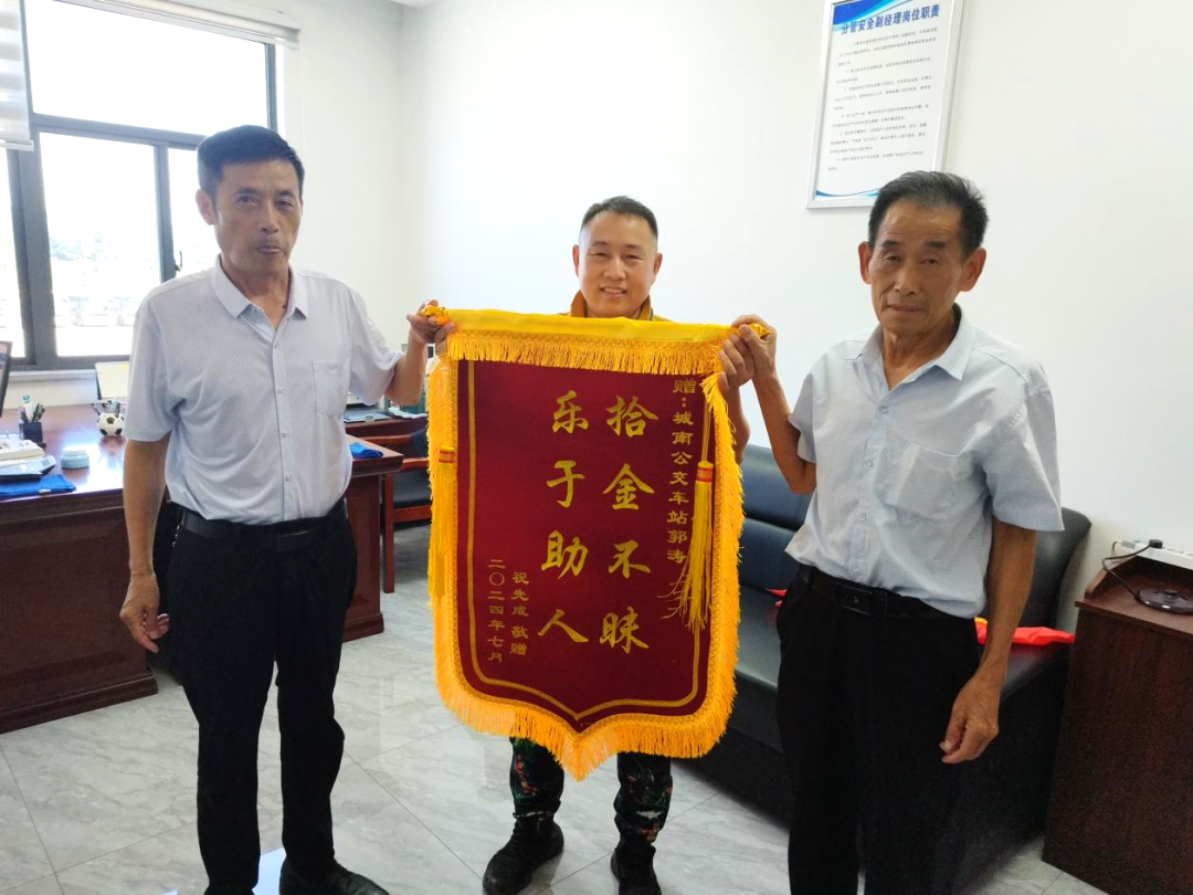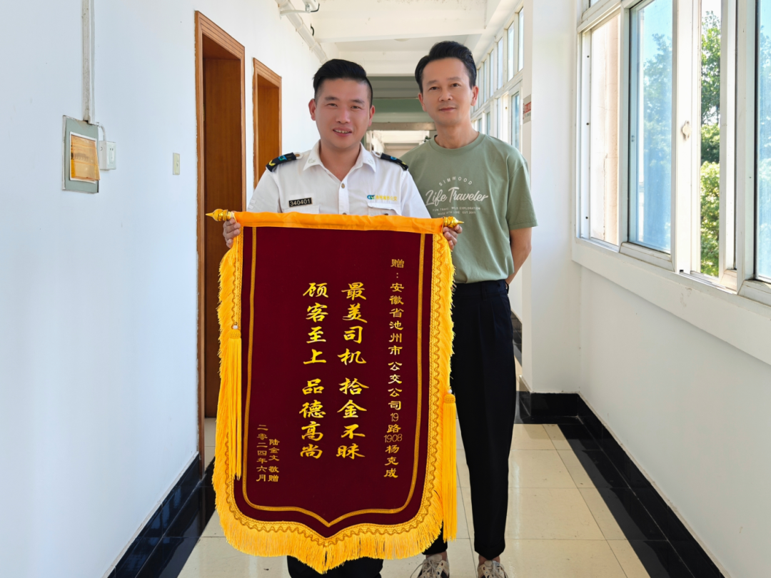 6月25日下午,池州市城市公共交通有限公司收到了乘客陸先生從河北郵寄來(lái)的一面錦旗。6月23日早上7:40分,城市公交客服熱線接到了乘客陸先生打來(lái)的電話,陸先生表示自己的手機(jī)和身份證丟了,半小時(shí)前乘坐過(guò)19路公交車。調(diào)度員在了解情況后立刻通過(guò)調(diào)度系統(tǒng)鎖定車輛并聯(lián)系公交師傅。楊克成師傅在靠站后找到了一個(gè)手機(jī)和一個(gè)身份證,立刻拍照發(fā)給調(diào)度中心進(jìn)行了核實(shí),并對(duì)物品進(jìn)行了保管。上午10:30分,陸先生在1908車楊克成師傅手上接過(guò)了自己遺失的手機(jī)和身份證,激動(dòng)萬(wàn)分,表示手機(jī)里的文件非常重要,能夠這么快完好無(wú)損的找回來(lái)自己很開心,非常感謝楊師傅。楊師傅表示“拾金不昧,物歸原主”是自己作為駕駛員應(yīng)該做的,哪怕是一根針一根線我們找到了都會(huì)保管好還給乘客。